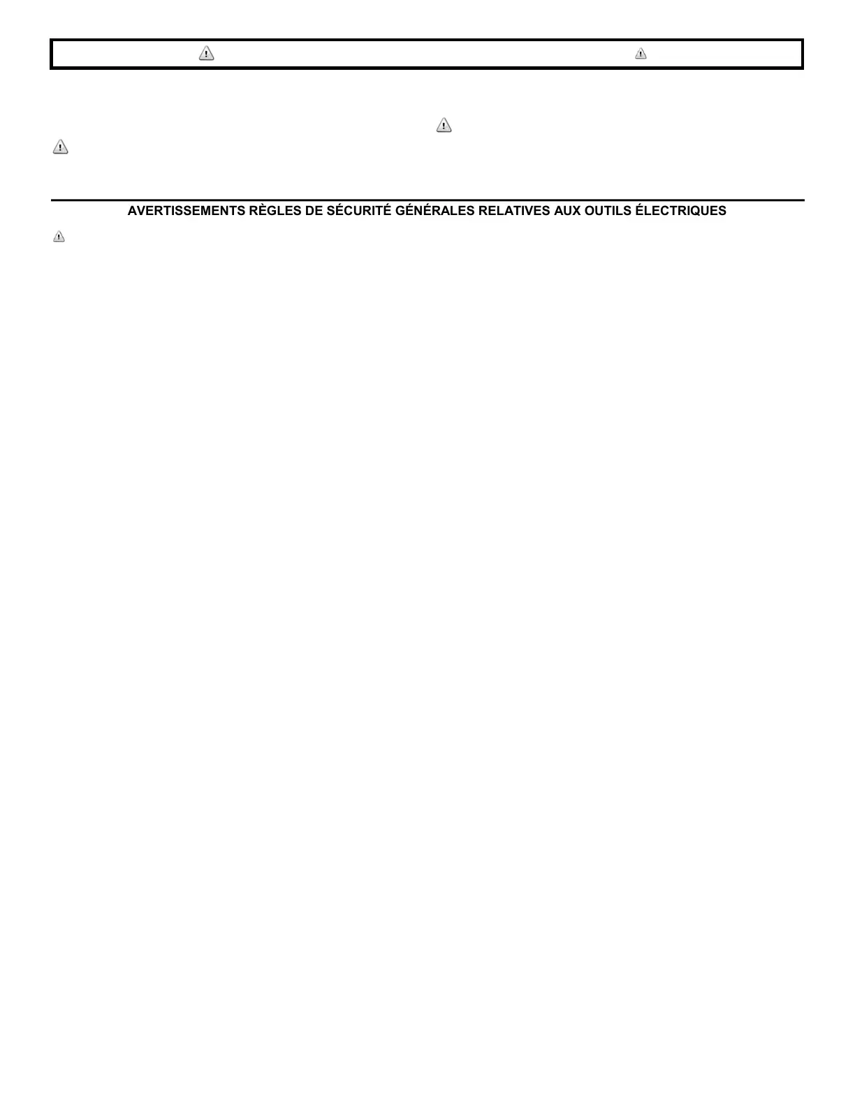 AVERTISSEMENTS RÈGLES DE SÉCURITÉ GÉNÉRALES RELATIVES AUX OUTILS ÉLECTRIQUES