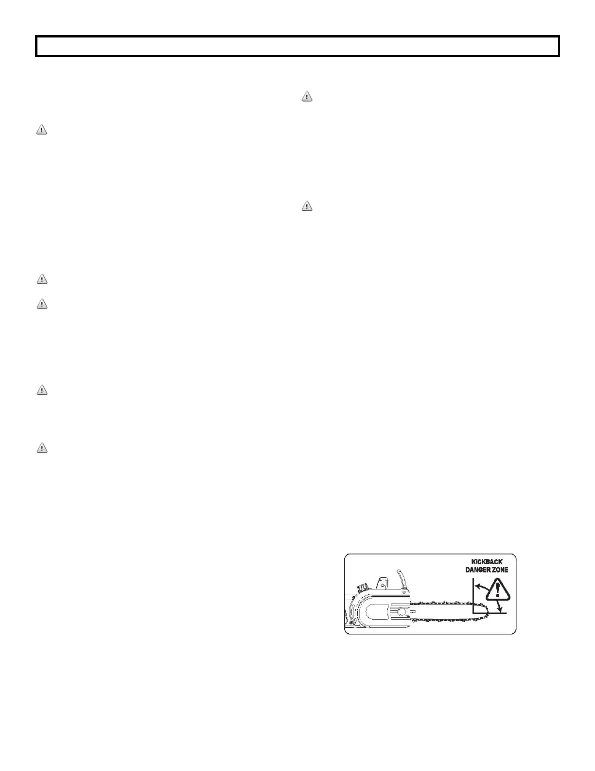 WARNING: Do not operate chain saw in a tree, on a ladder,