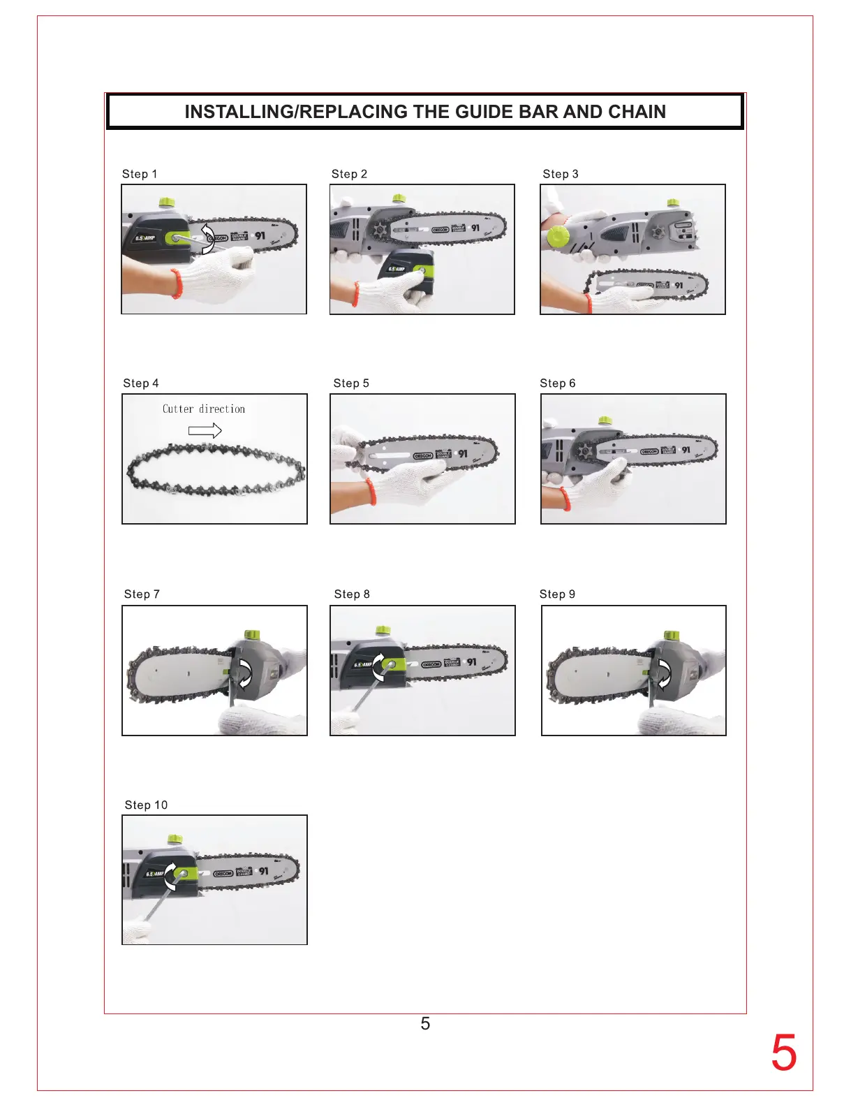 INSTALLING/REPLACING THE GUIDE BAR AND CHAIN