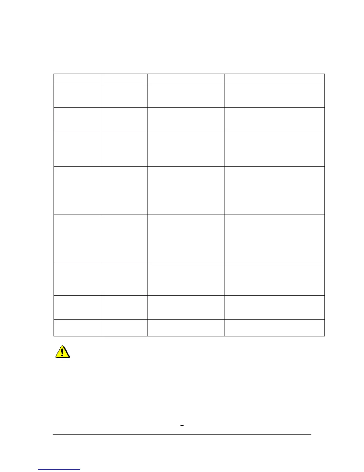 The table below shows the most common fault conditions and possible causes.