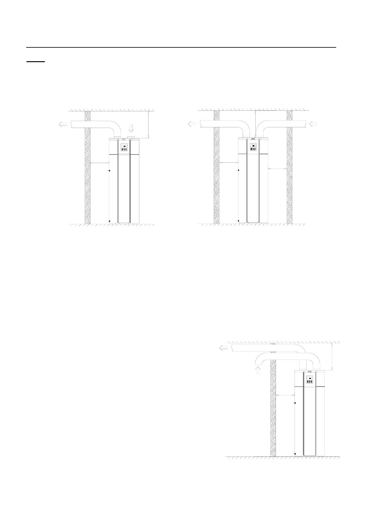 tuberías de entrada y salida de aire para el intercambio de aire. La distancia de la unidad y la pared u