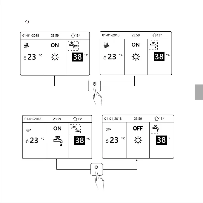 Der Raum-Betriebsmodus ist OFF, danach werden folgende Seiten angezeigt:
