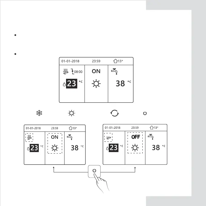 Use the interface to turn on or off the unit for space heating or cooling.