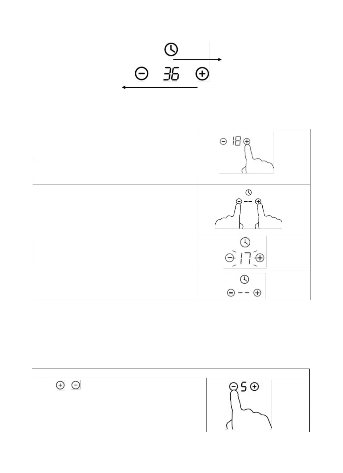 b) Pulse y mantenga "-" o "+" del control del temporizador para disminuir o incrementar en