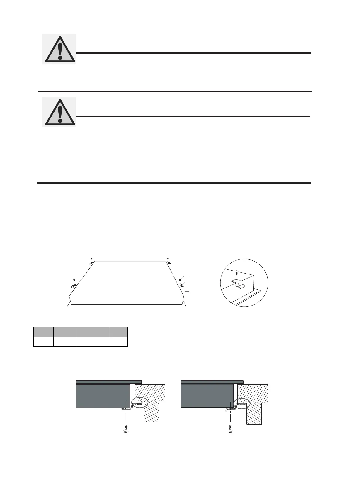 Fix the hob on the work surface by screw four brackets on the bottom of hob (see picture) after