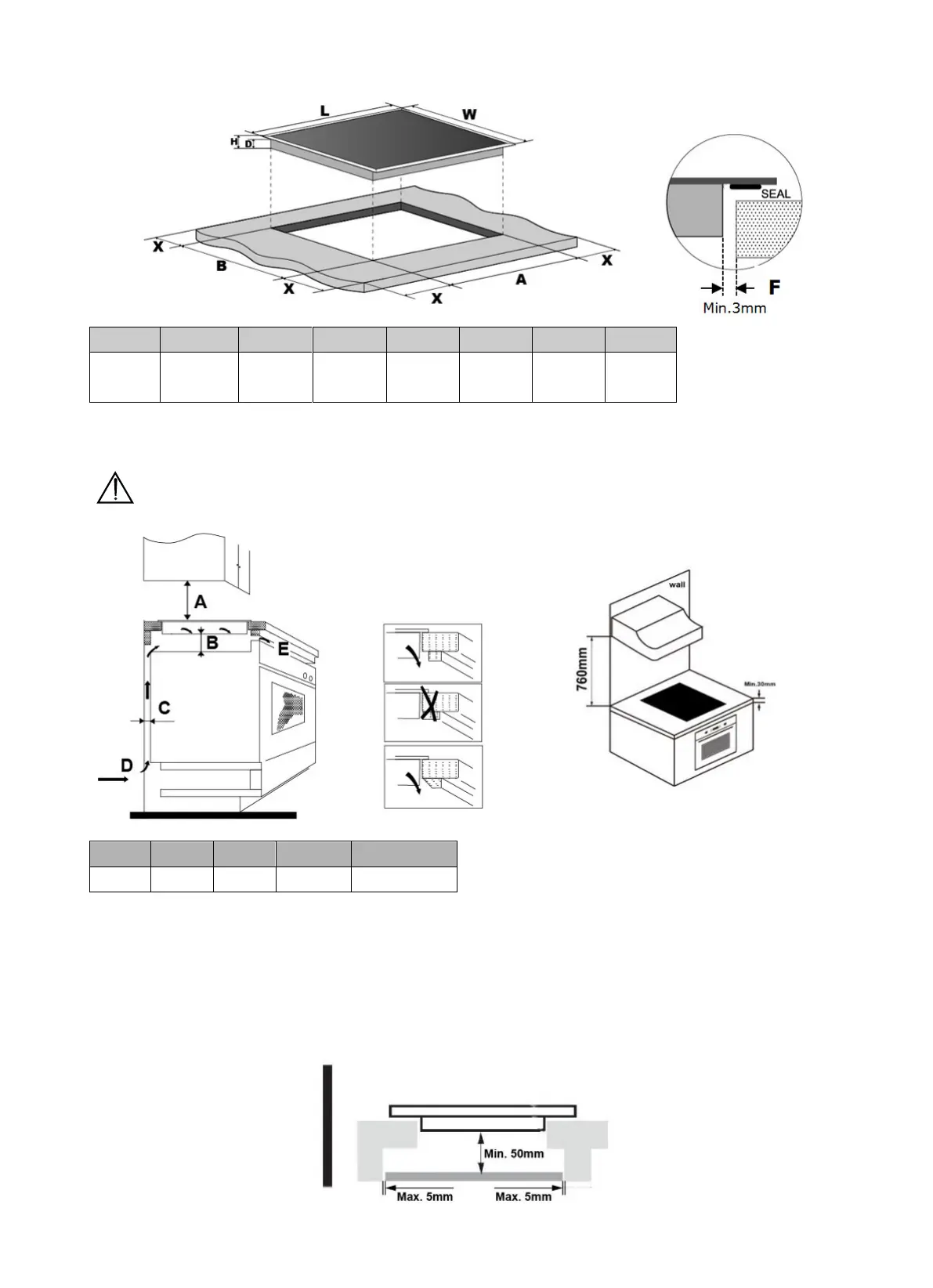 distance of 50mm from the bottom of the hob. Follow the requirements below.