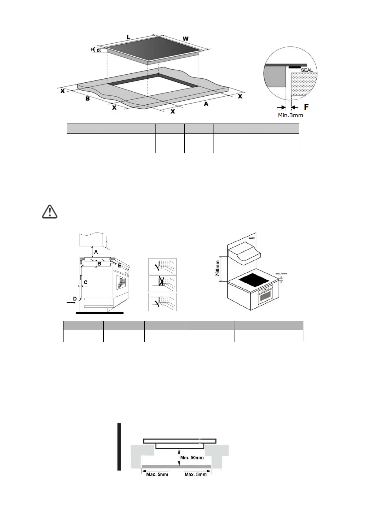 minimale de 50 mm du fond de la plaque de cuisson. Suivez le schéma ci-