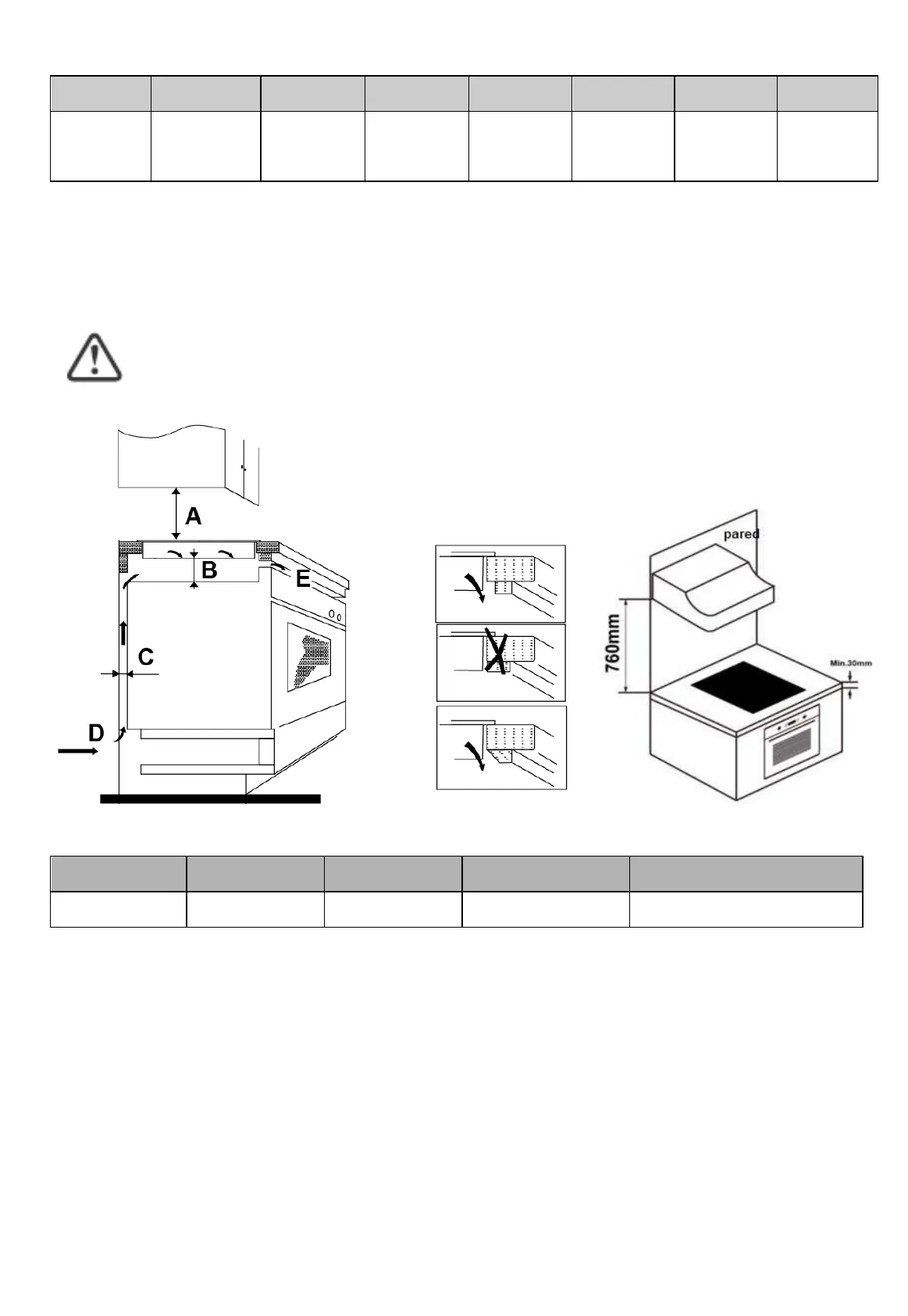 armario sobre la placa de cocción debe ser al menos 760mm.
