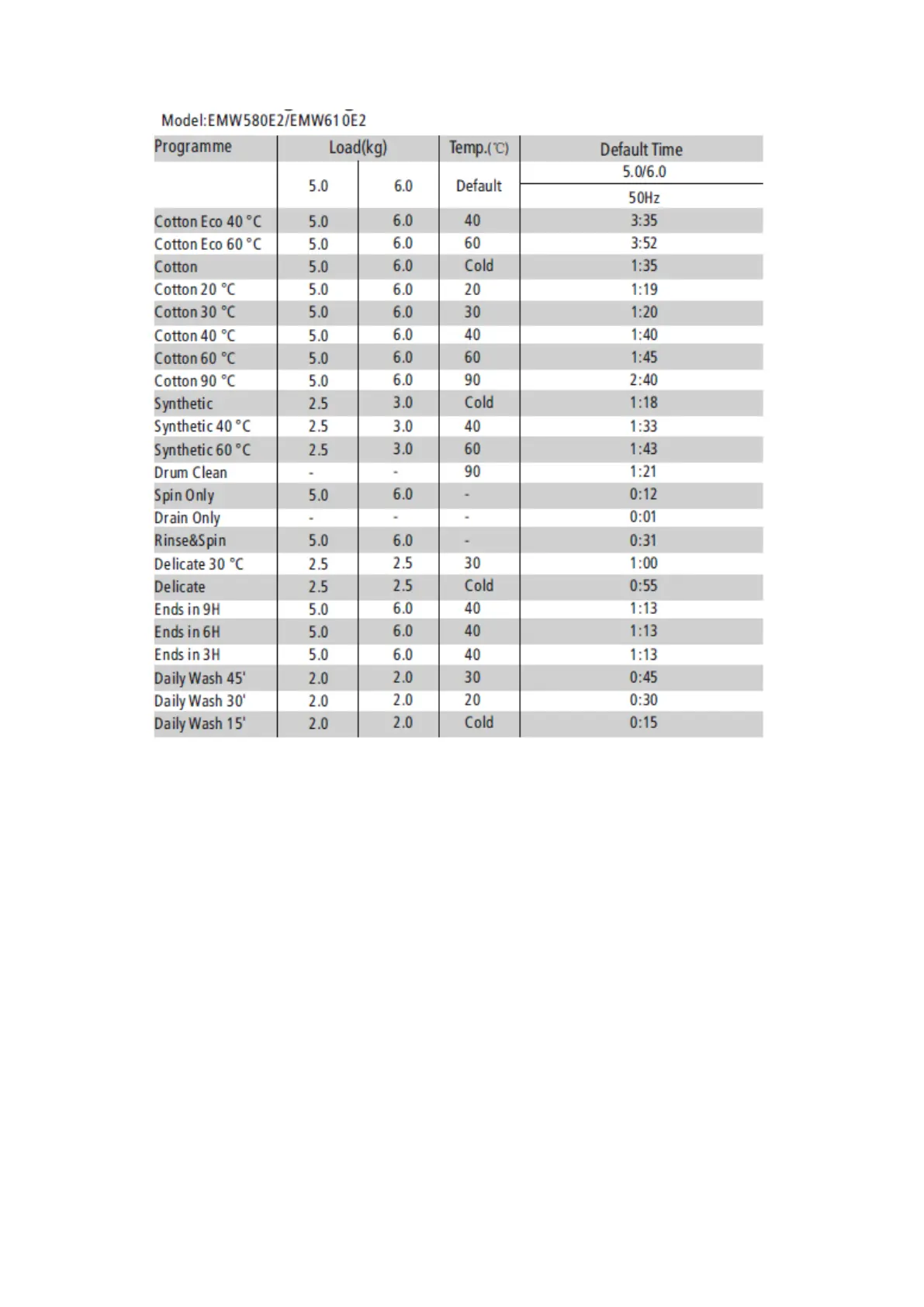 Half load for 7.0/8.0Kg machine:3.5/4.0Kg.
