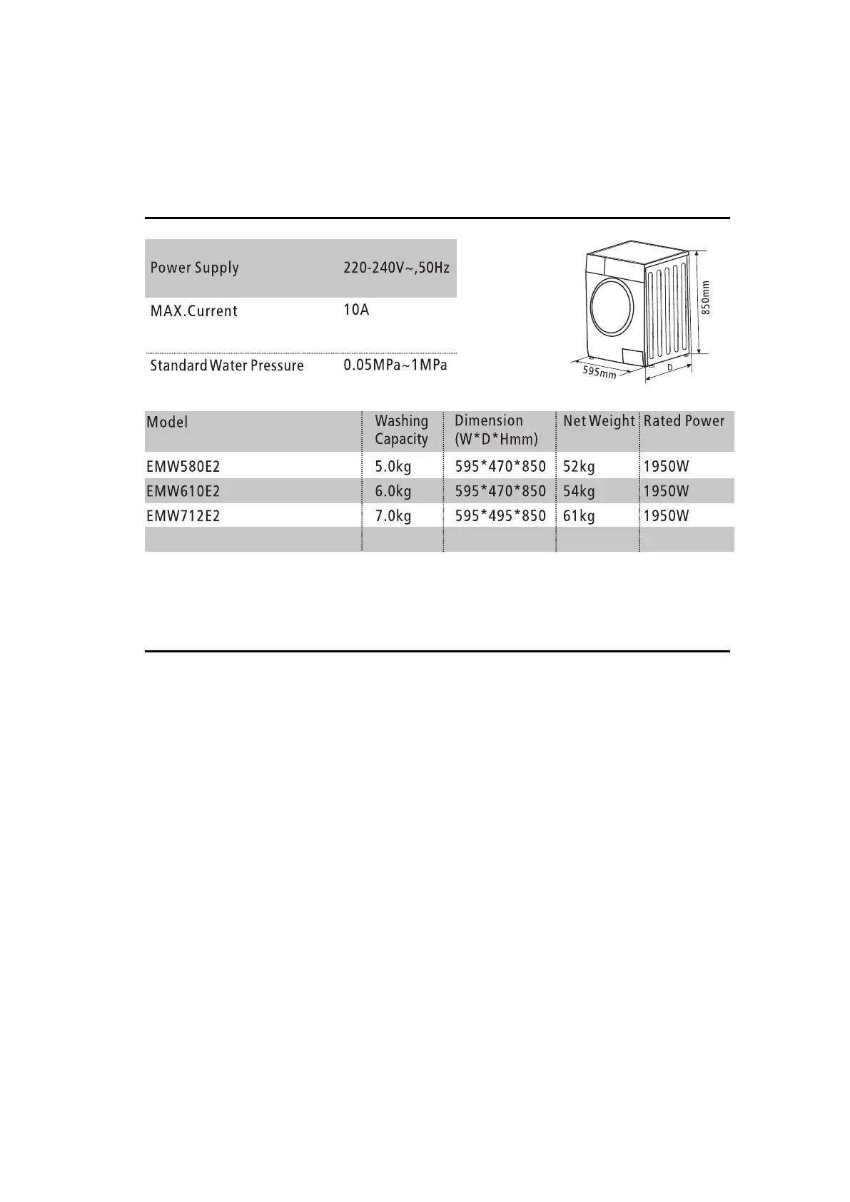 EMW812E2 8.0kg 595*565*850 68kg 2000W