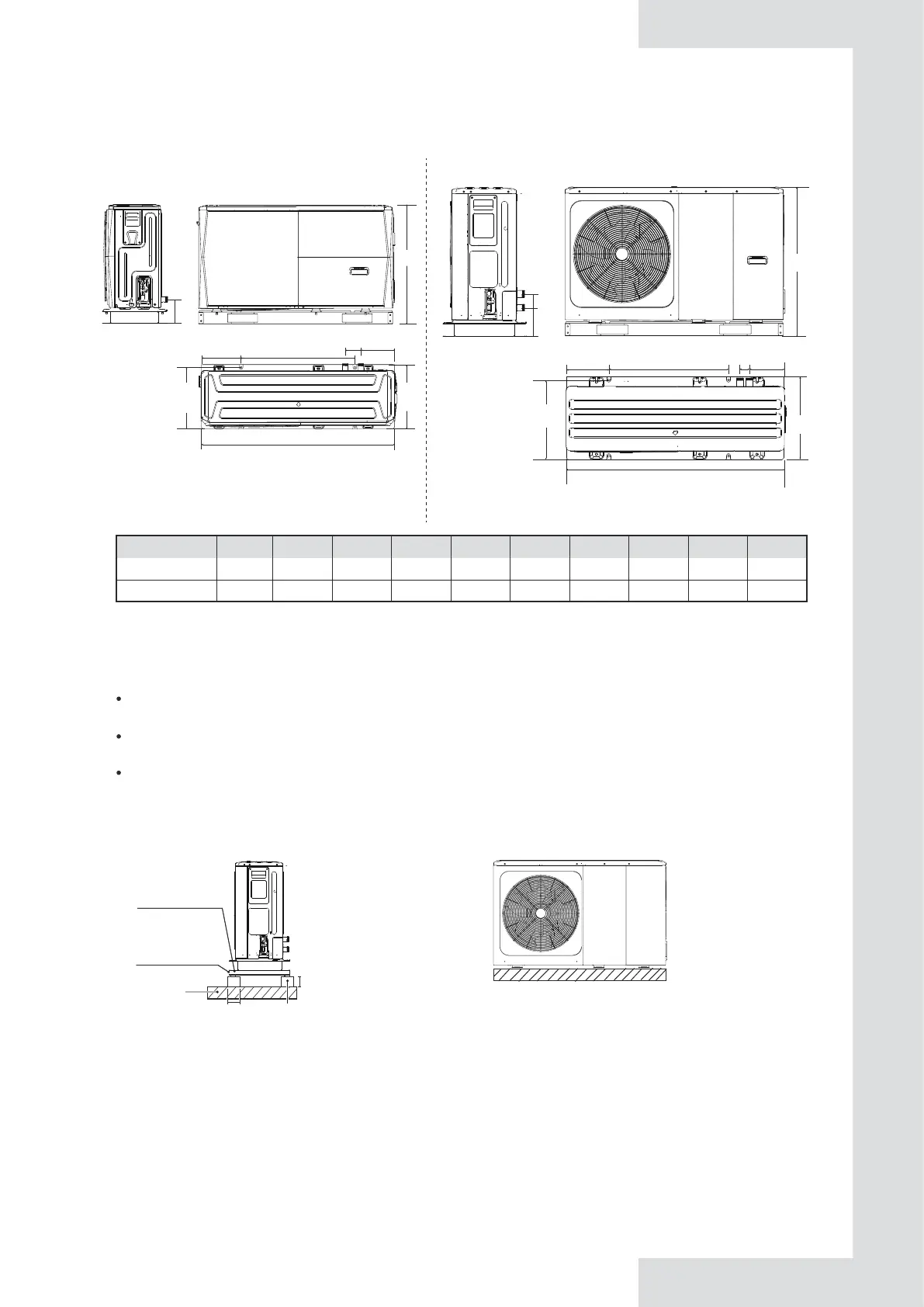 Check the strength and level of the installation ground so that the unit may not cause any vibrations or noise during its