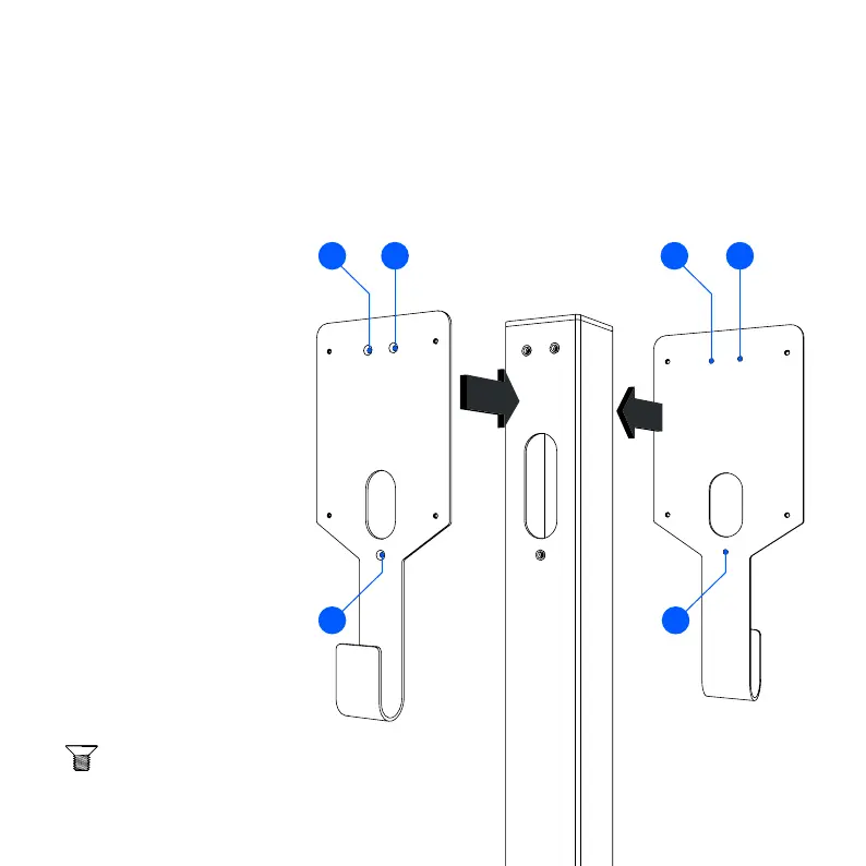 Attach the mounting plates to the column with 3 flat head