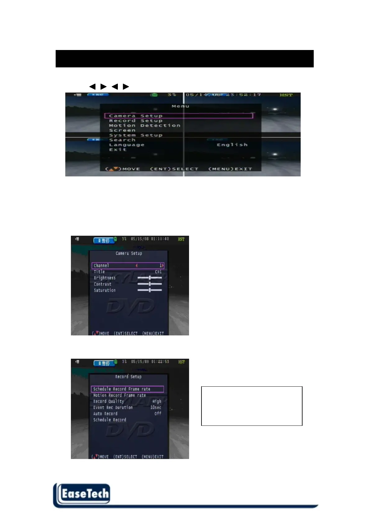 2.2 Record Setup Use this function to setup the record frame rate of each channel
