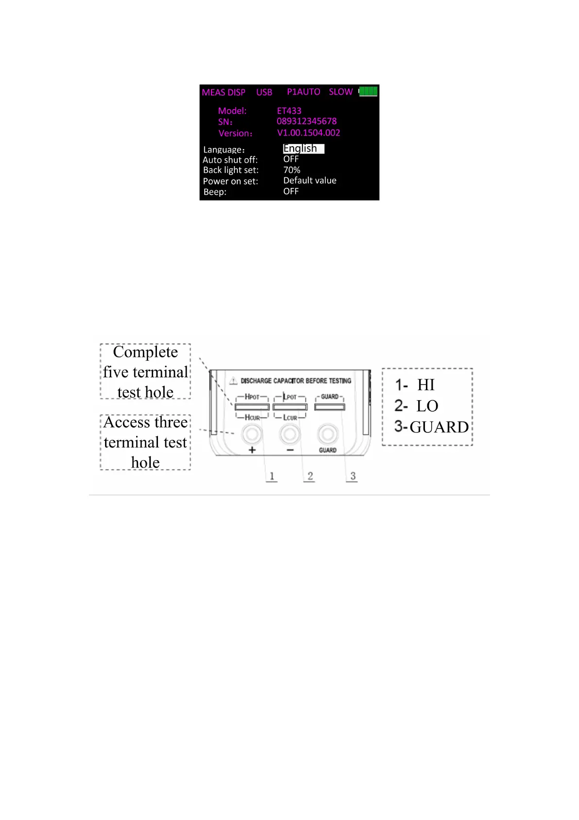 ET43 Series uses the 3- and 5-terminal test ports at the same time, which is to