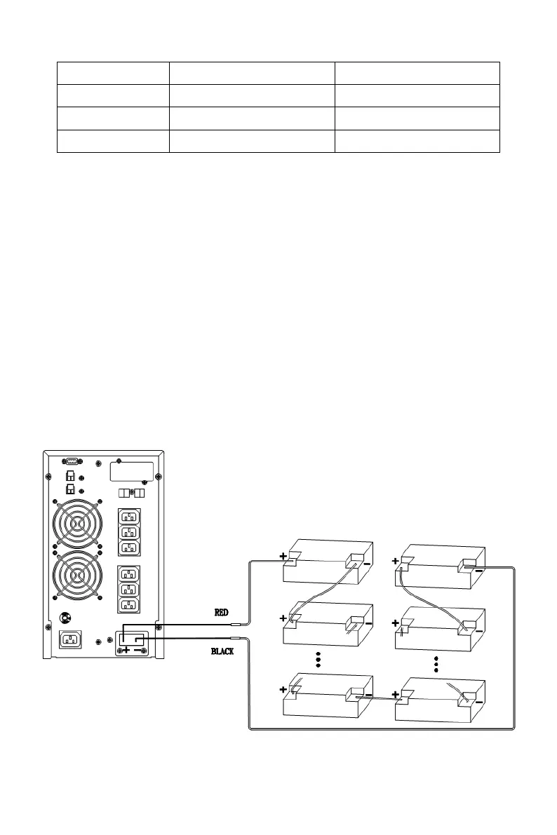 Connect long battery cable to UPS terminals with correct poles link (red is for ‘+’,
