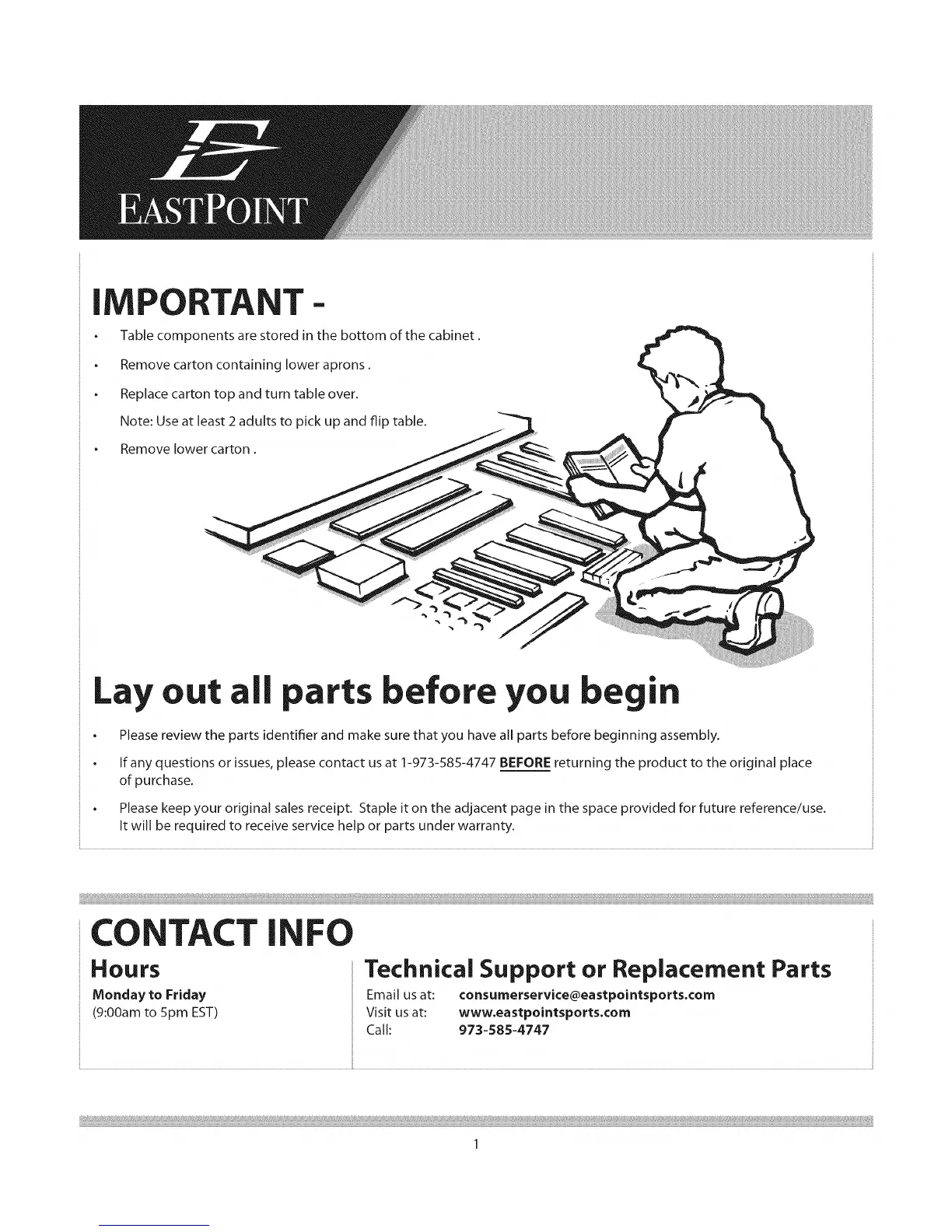• Please review the parts identifier and make sure that you have all parts before beginning assembly.