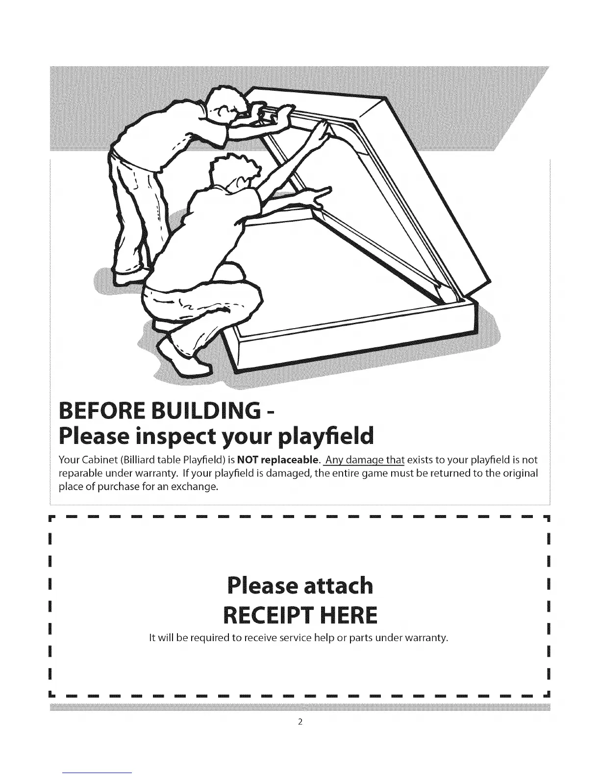 reparable under warranty. If your playfield is damaged, the entire game must be returned to the original