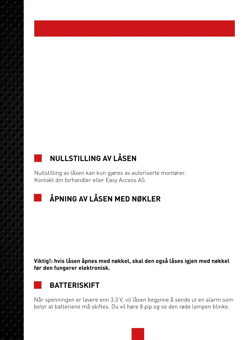 Nullstilling av låsen kan kun gjøres av autoriserte montører.