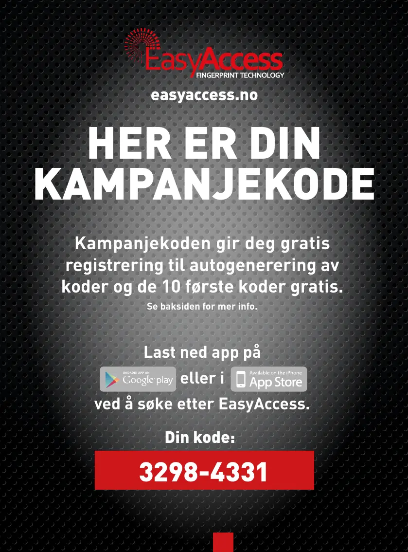 låsen. Kampanjekoden gir deg gratis registrering og de 10 første koder gratis slik at