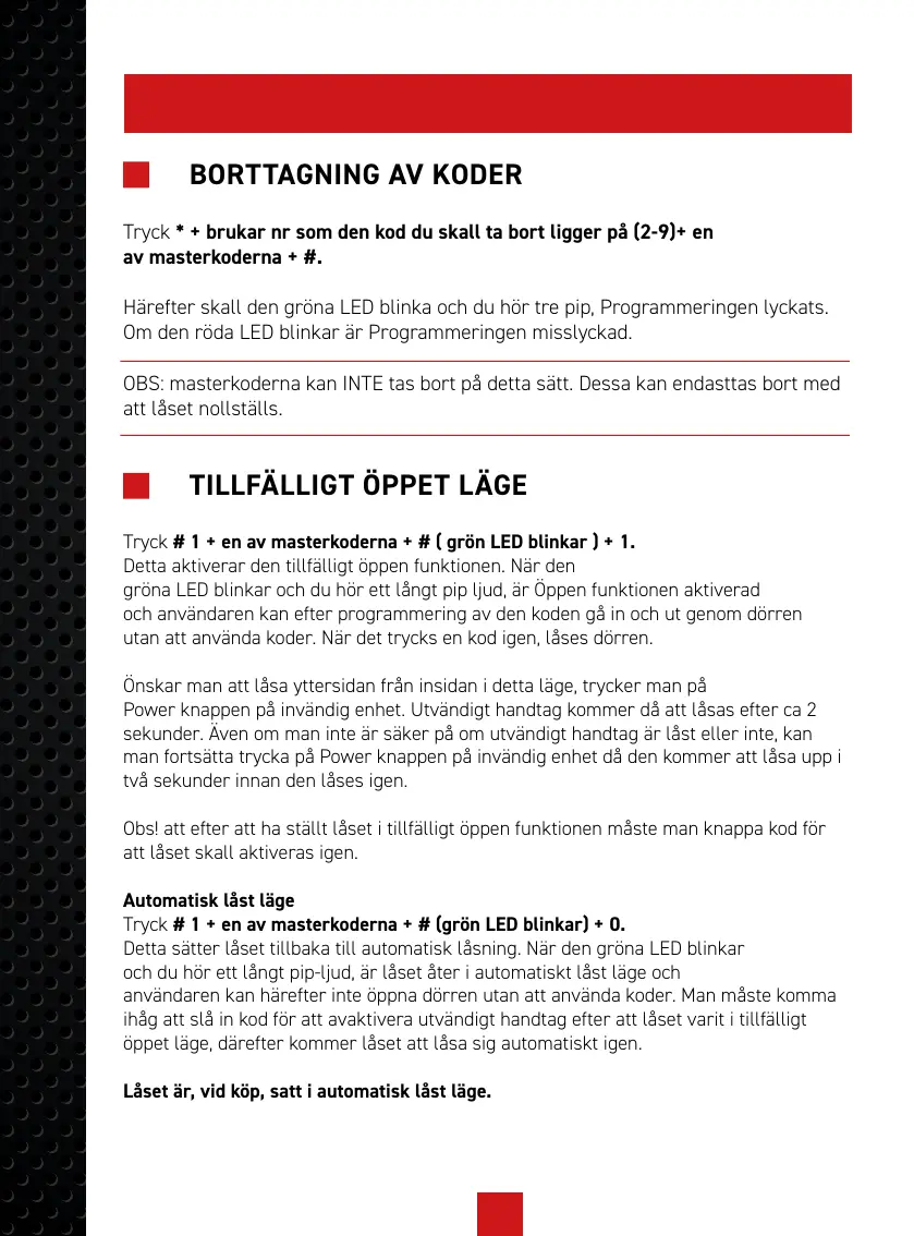 utan att använda koder. När det trycks en kod igen, låses dörren.