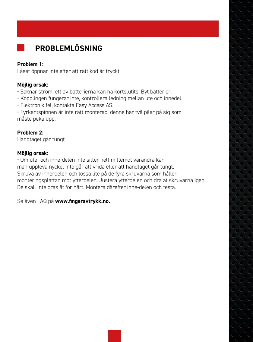 man uppleva nyckel inte går att vrida eller att handtaget går tungt.