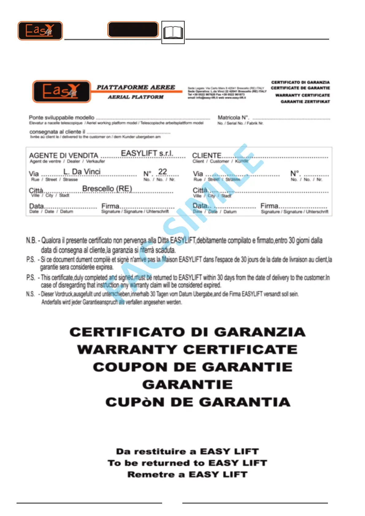 GARANTIBEVIS WARRANTY CERTIFICATE