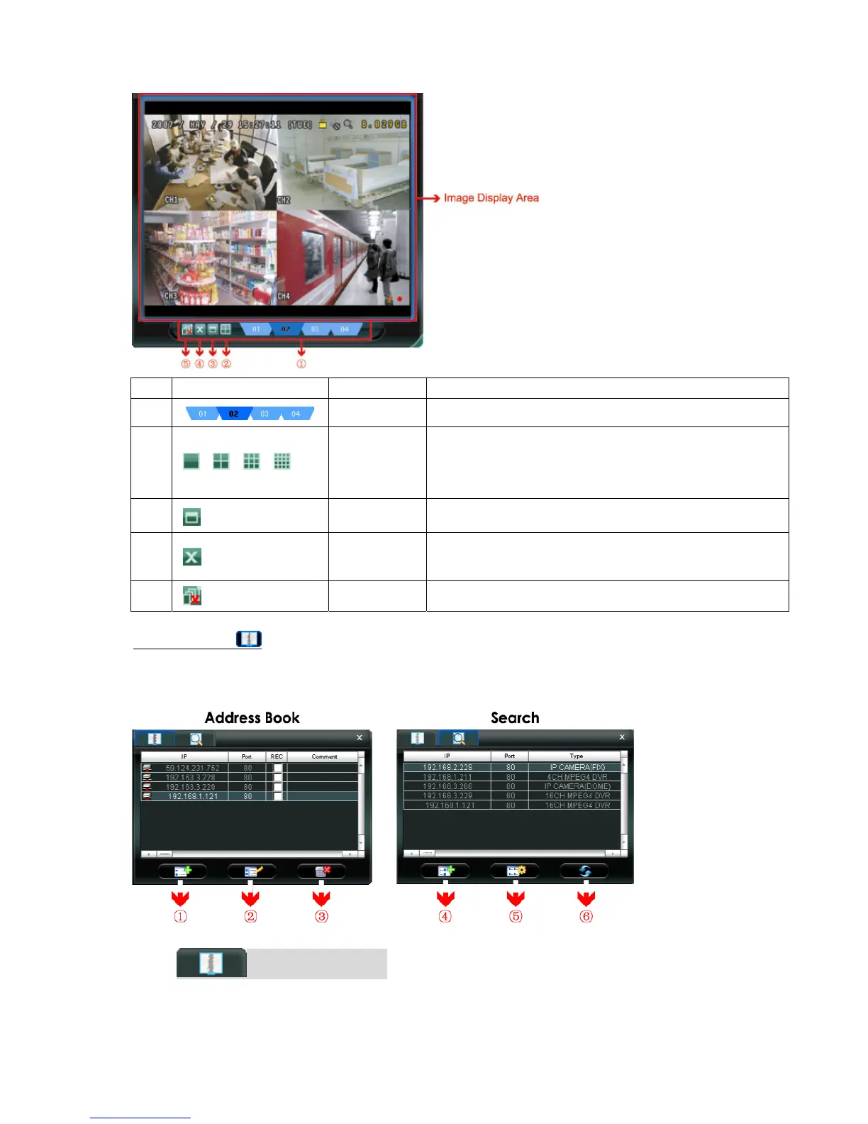 This view is displayed when the AP is activated for you to log in / out the DVR from the current address list, or