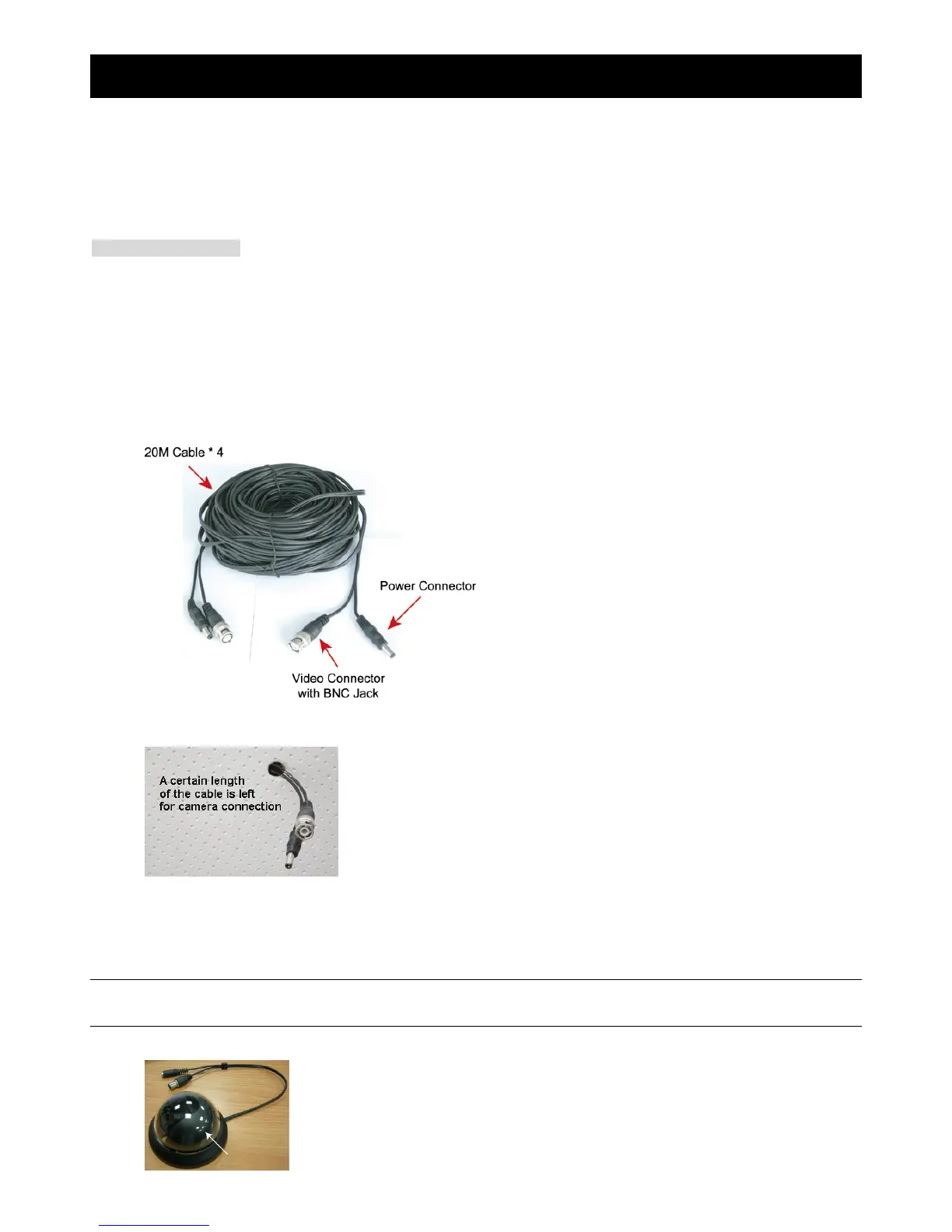 Four 20M cables are supplied within your sales package for camera connection. Depending on the actual installation