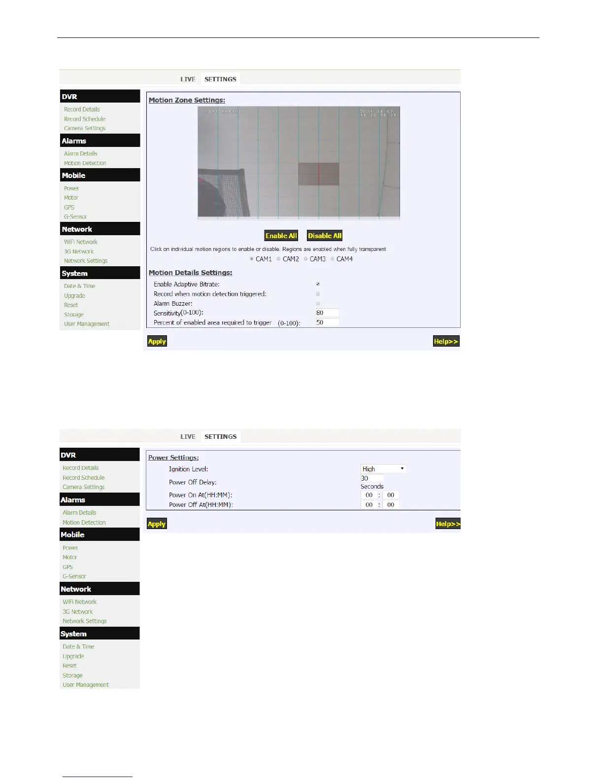 2. Power Off Delay is used to set how long the DVR keeps working after ignition is off.