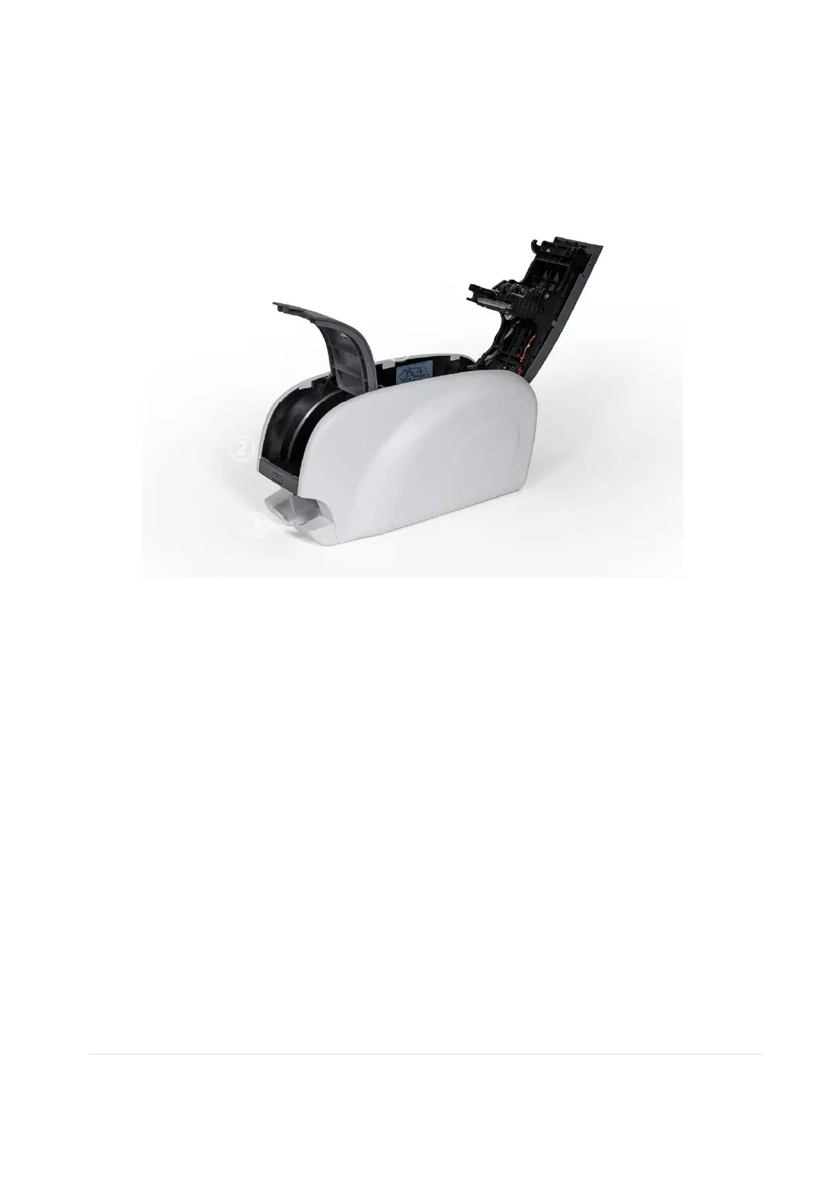 Collects the printed cards. Maximum 25 cards. The hopper can be removed by pulling