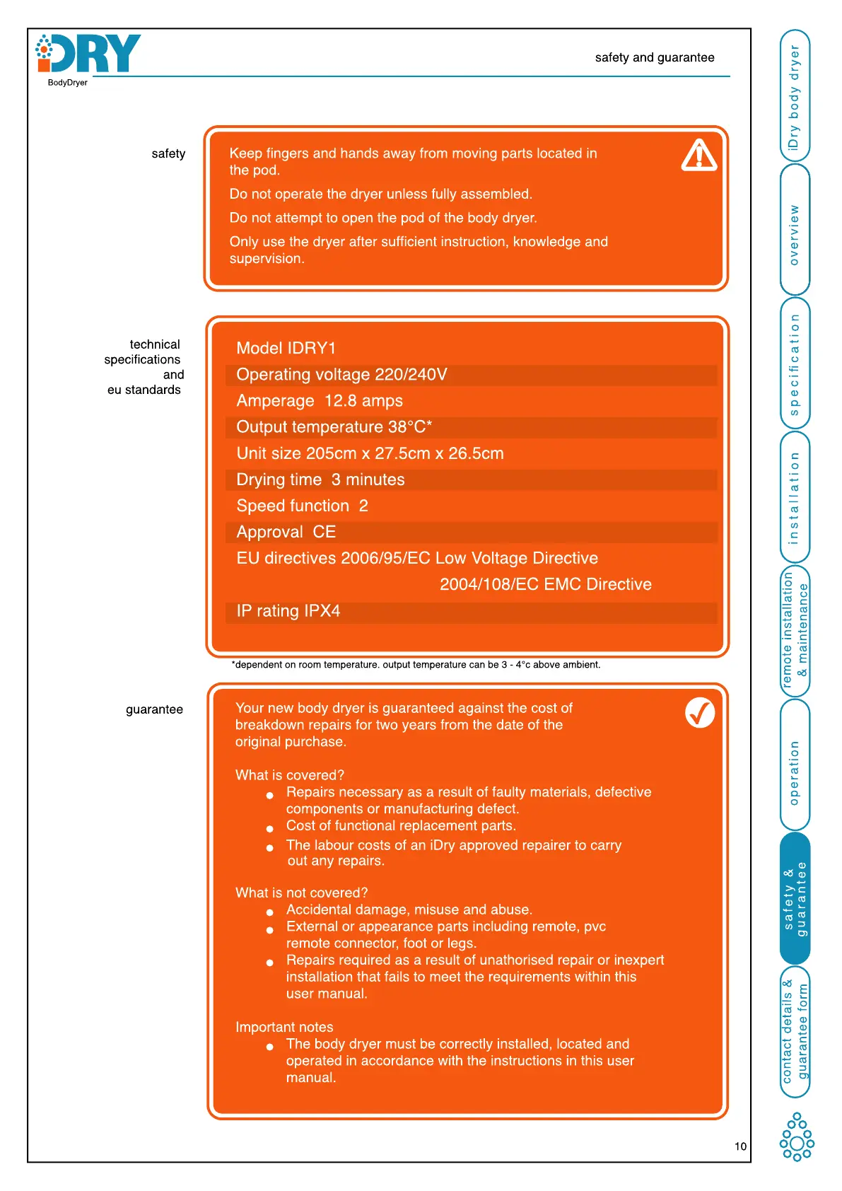 Your new body dryer is guaranteed against the cost of
