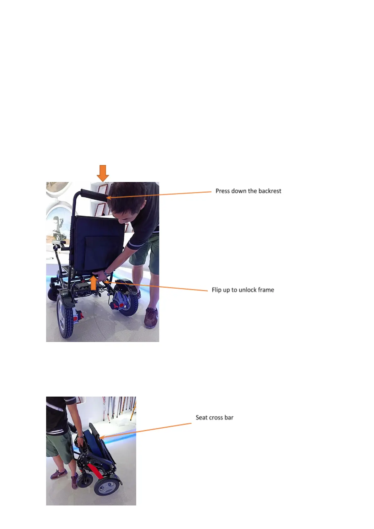 4. Fold the wheelchair. Do this by grasping the backrest bar and pushing it forward, towards