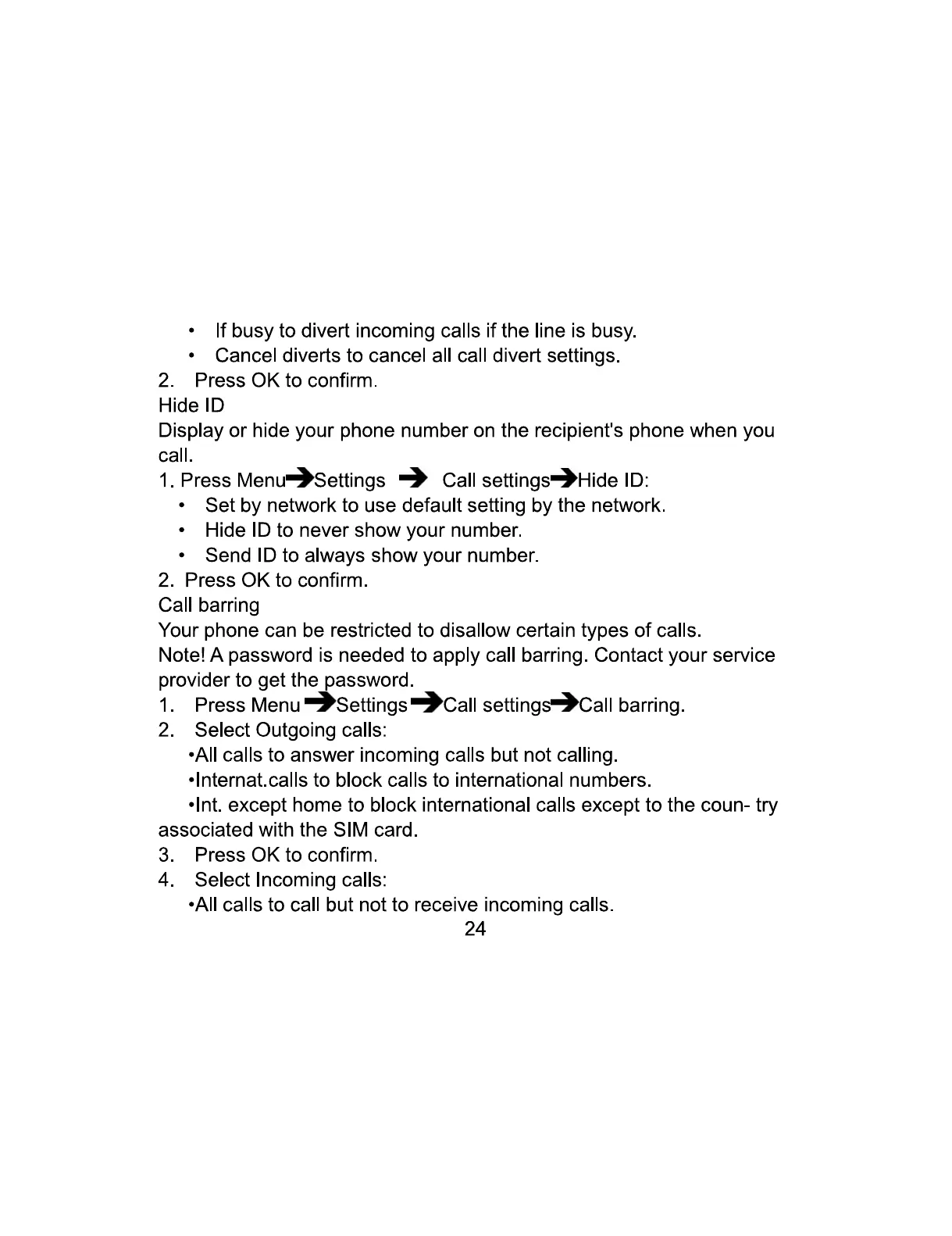 Easyfone Prime A1 - Hide ID; Call barring
