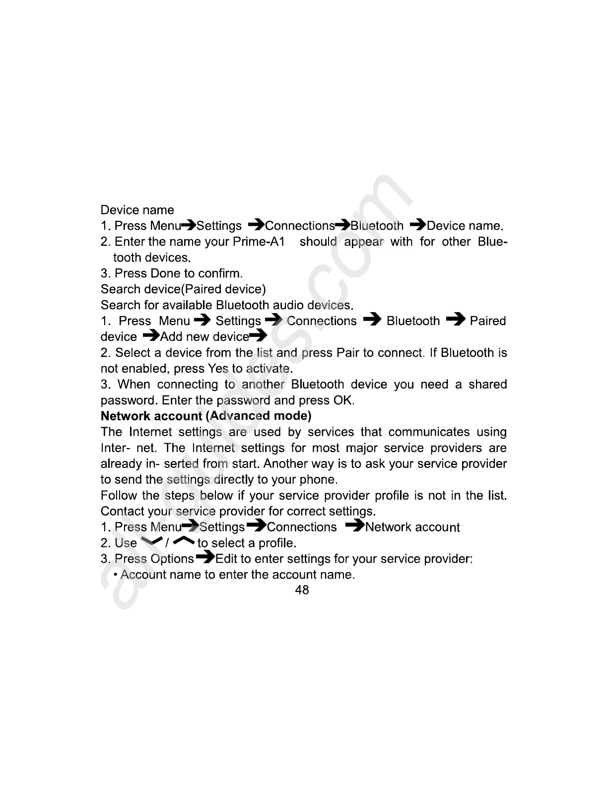 Easyfone Prime A1 - Device name; Search device(Paired device); Network account (Advanced mode)