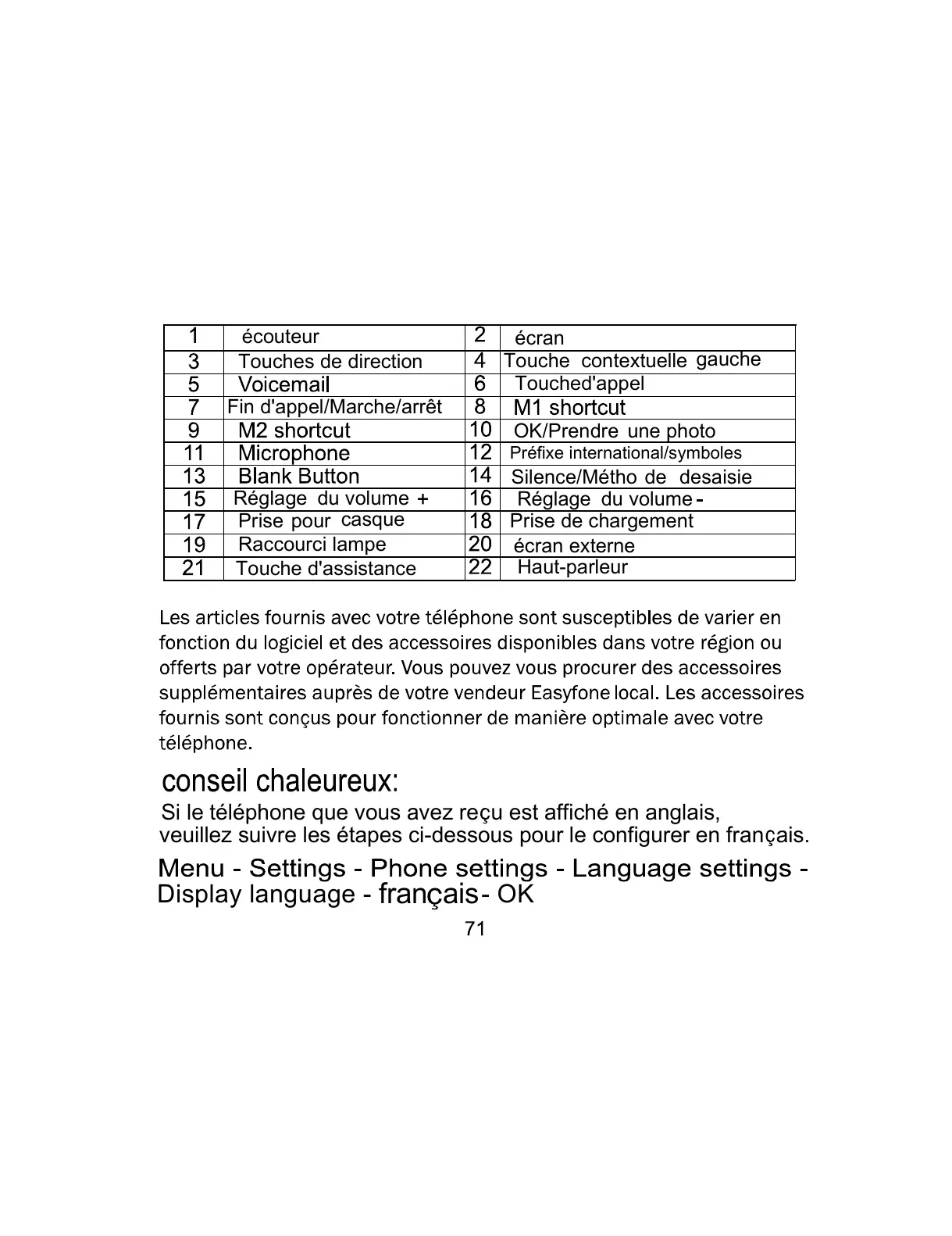 Si le téléphone que vous avez re u est afficen anglais,