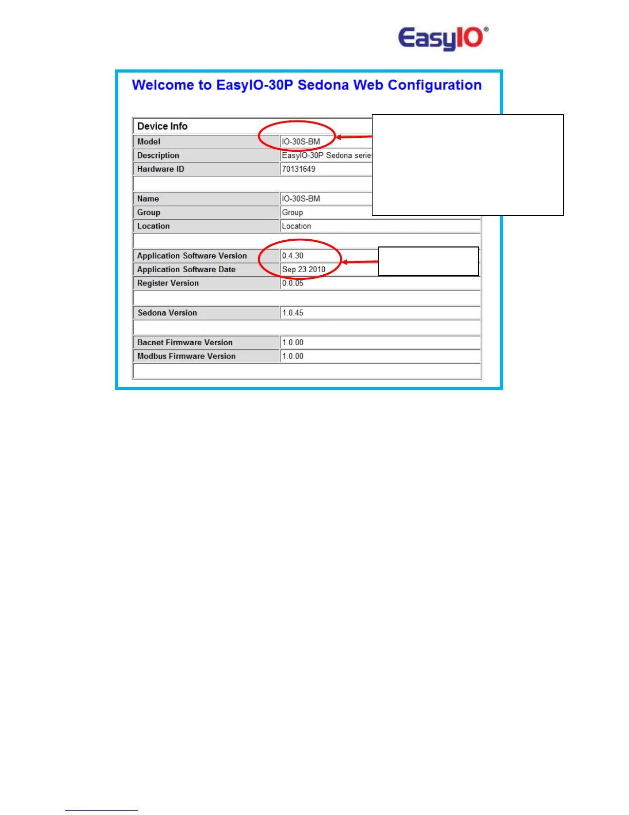 IO-30S-BM = Sedona Firmware version