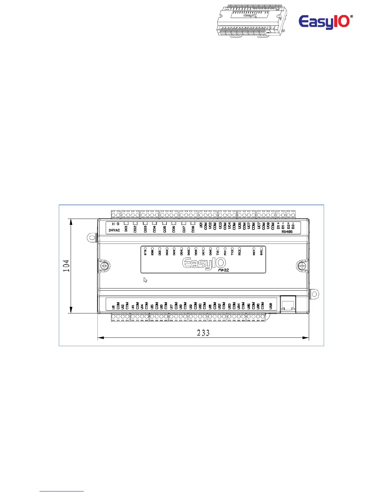Below are the dimensions for the EasyIO FG-32.