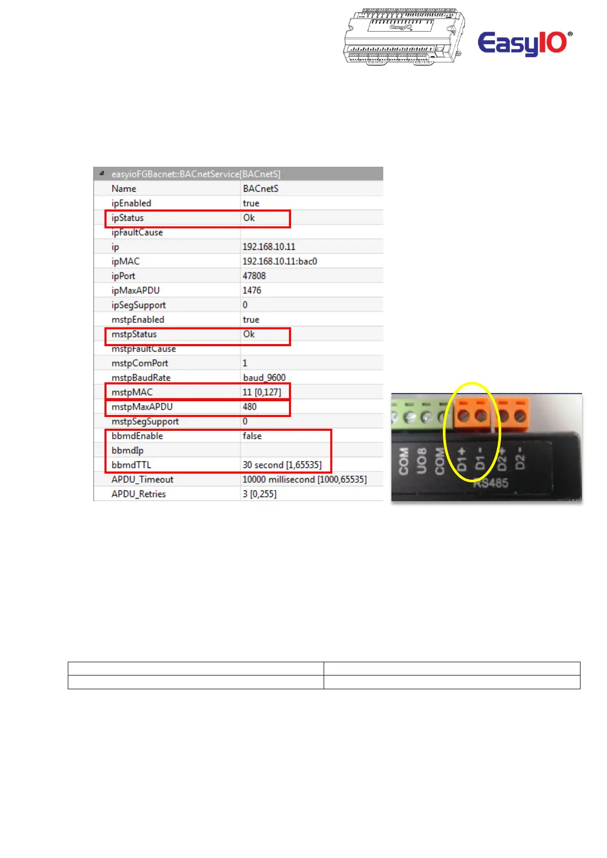 Configuration of the BACnet communication parameters such MSTP MAC address is carried out here.