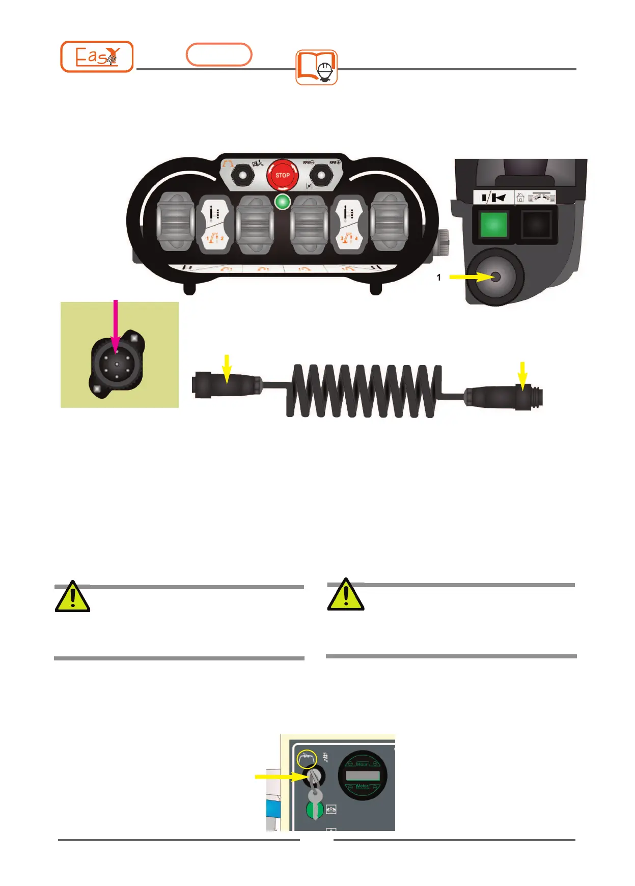 Rotate the key switch (1) on the main control panel in coun-