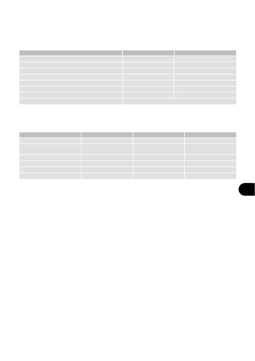 Die Tabelle gibt den Werkstofftyp der Gefäße je nach Betriebsart des Gerätes (Mikrowelle,