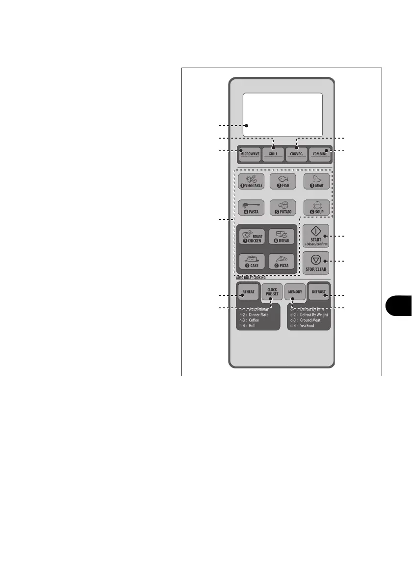 M) Taste: zur Auswahl der Auftauart (je nach dem Produktgewicht oder der Zeit).