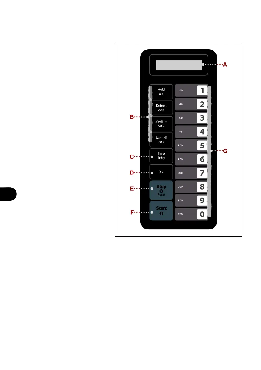 F) Taste: Dient zum Starten eines Garzyklus mit manueller Eingabe der Zeit und zum