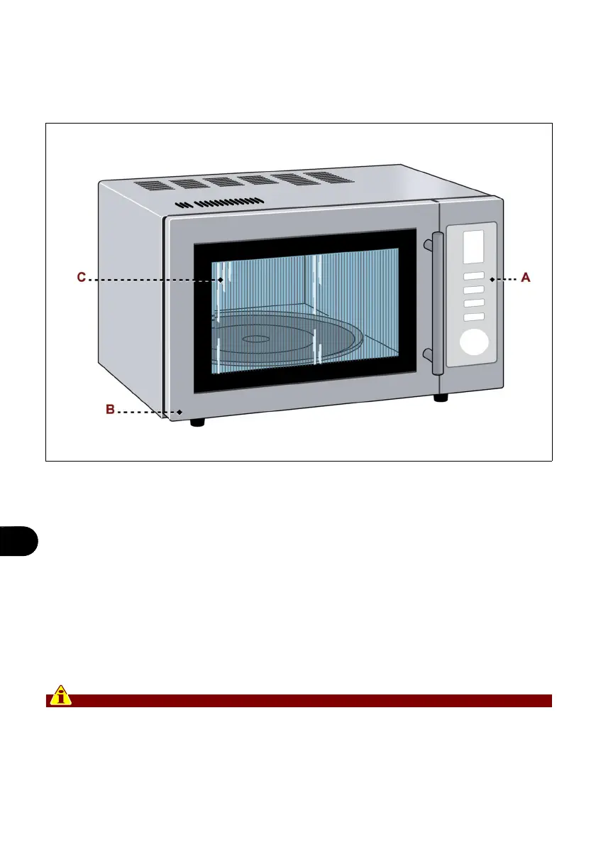 C) Cavidade do forno: é equipada com resistências eléctricas (para o funcionamento na