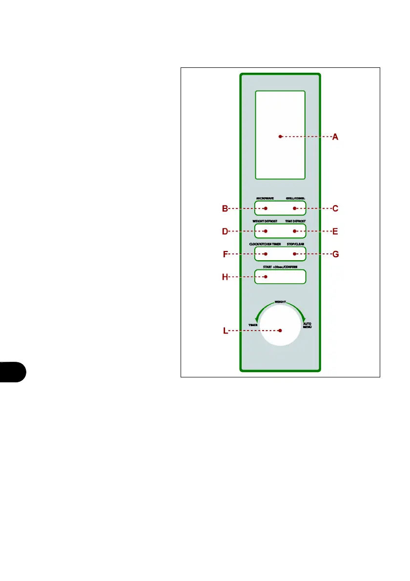 L) Manípulo: serve para programar o tempo de cozedura, para programar uma das fun-