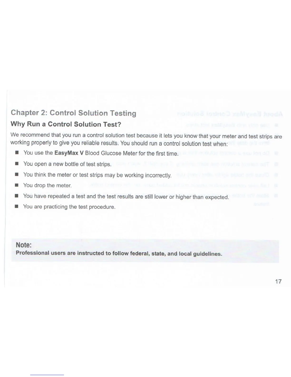 Easymax Easy V - Control Solution Testing; Importance of Control Tests