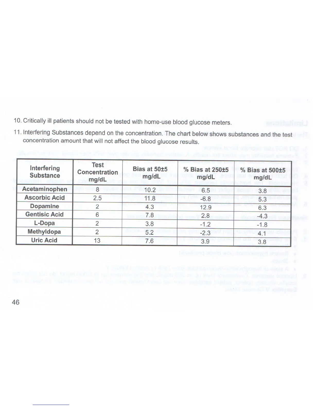 Easymax Easy V - Interfering Substances; Substance Interference Chart
