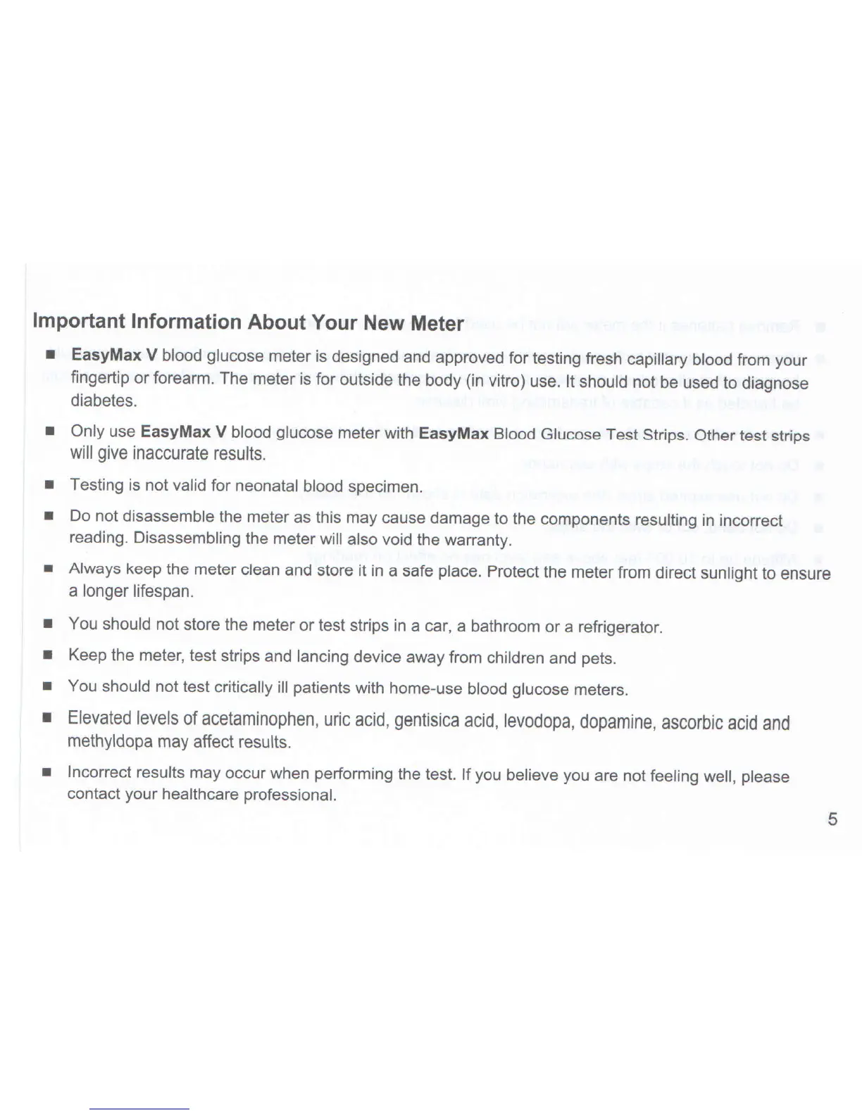 Easymax Easy V - Important Meter Information; Key Usage Warnings
