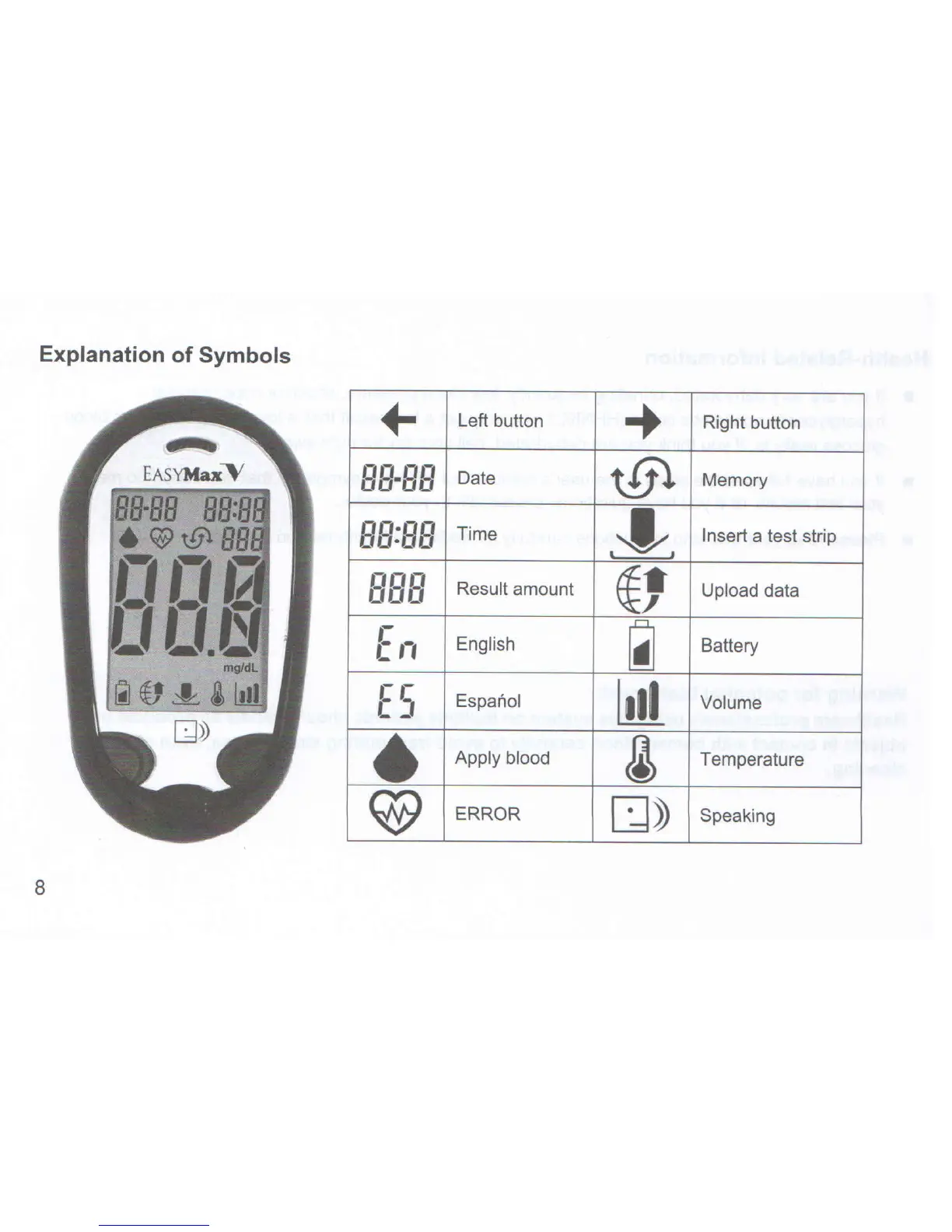 Easymax Easy V - Understanding Meter Symbols; Symbol Glossary