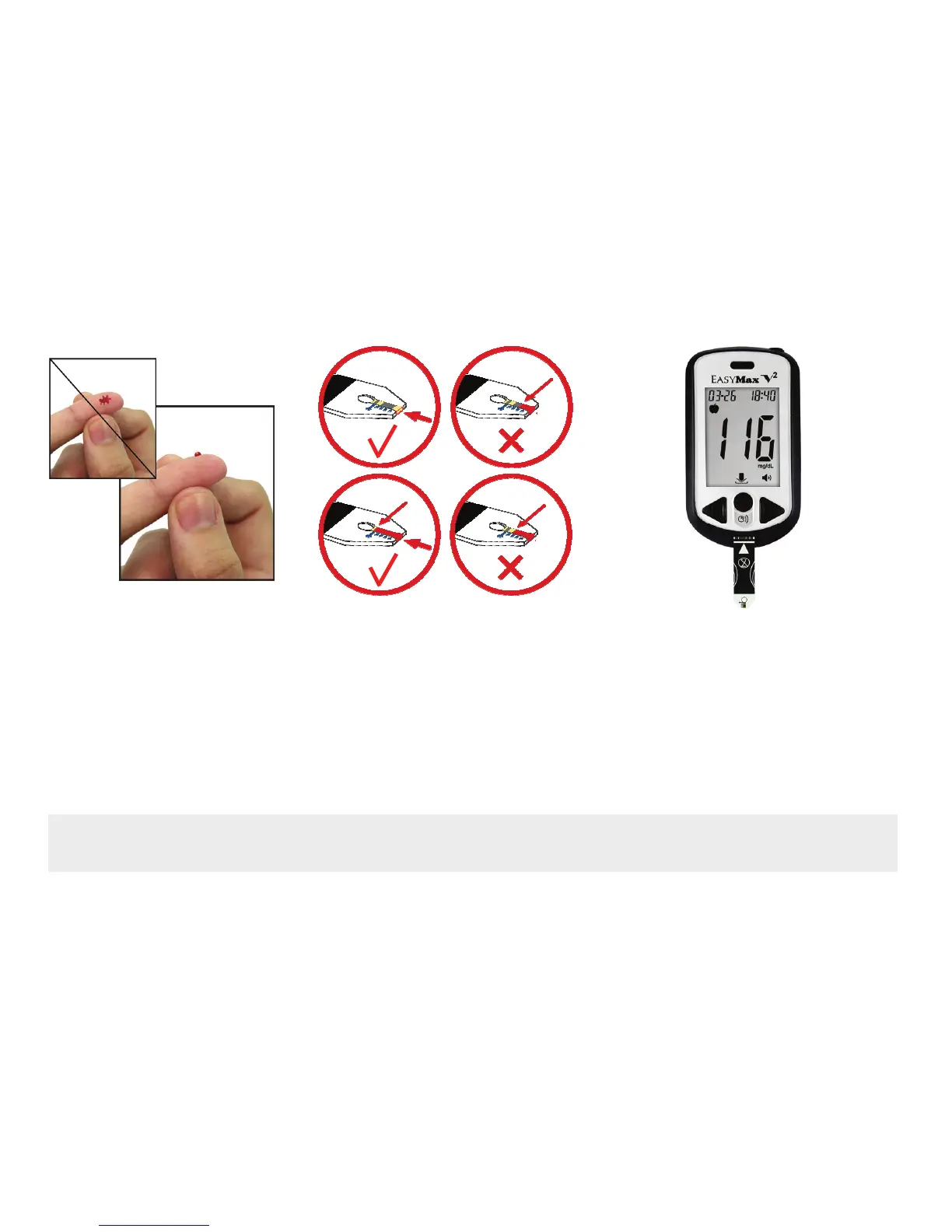 Note: 1. Please make sure to apply blood when the blood drop appears on the display.
