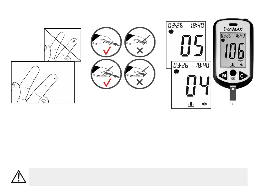 1. Please make sure to apply blood when the blood drop appears on the display.
